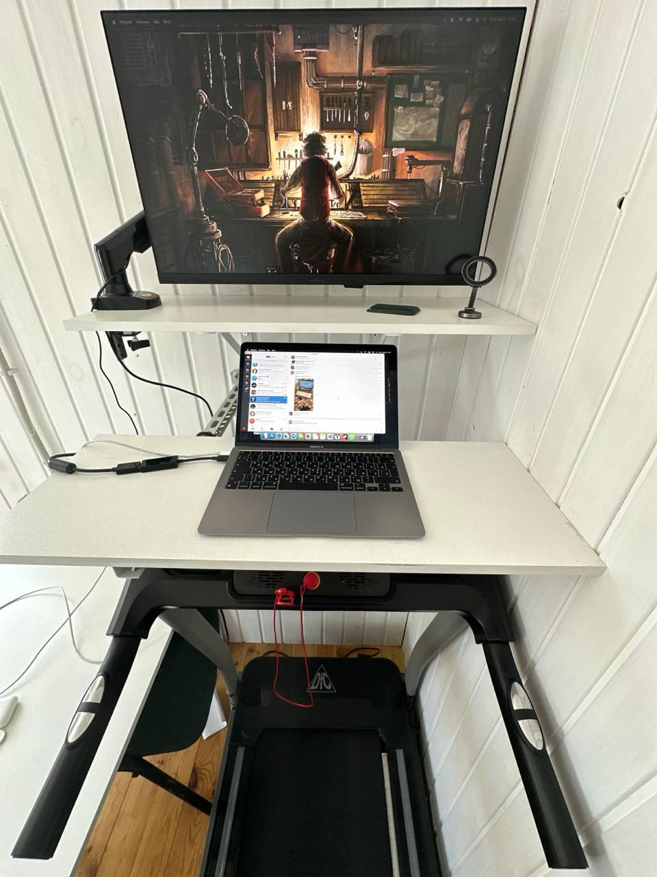Сидячий образ жизни никого не щадит. Так я начал работать на беговой дорожке. Повесил монитор на стену, столик соорудил и в режиме медленной ходьбы продолжил кодить, макеты рисовать и настраивать рекламу, но уже часов по пять, максимум восемь. С возрастом пришлось заставлять себя переключаться, заниматься спортом, да и семья стала расти. Детям тоже нужно и хочется уделять внимание.