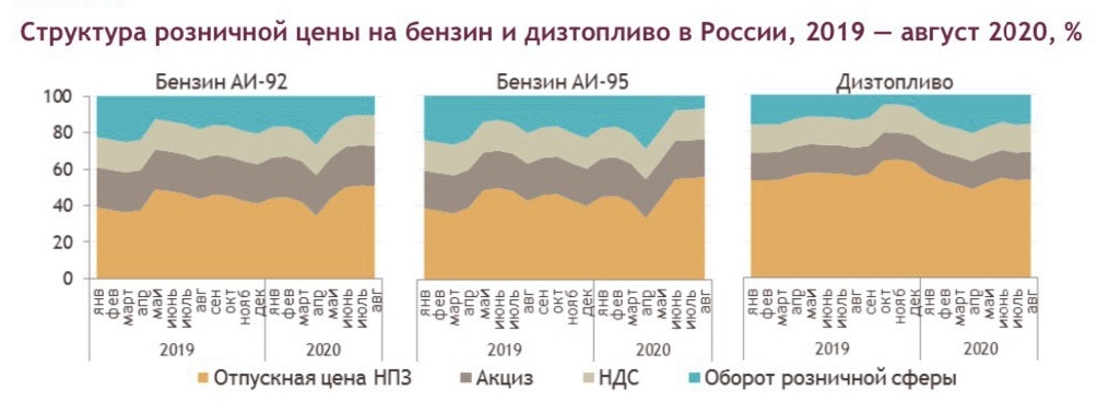 Размер акциза постоянно растет. Это предусматривает налоговый кодекс. Итого, себестоимость сырья в России составляет всего 12%. При этом мировые цены на нефть существенно не влияют на внутренние розничные цены. Почему? Резкие колебания контролирует государство. Через специальный механизм. Демпфер.