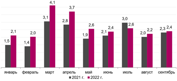 Об этом сообщает «Коммерсантъ» со ссылкой на данные отчета аналитической службы аудиторско-консалтинговой сети FinExpertiza. Данные за сентябрь сравнивали с показателями сентября 2021 года.